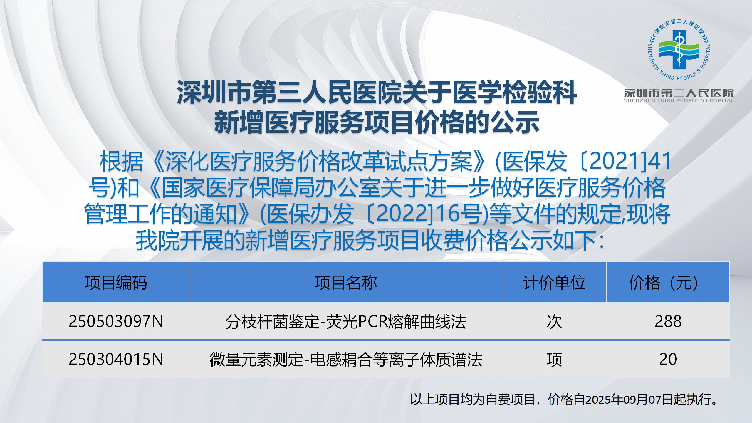 深圳市第三人民医院关于医学检验科新增医疗服务项目价格的公示
